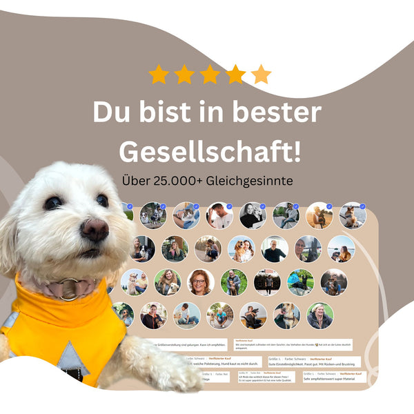 Der Mantel wurde gemeinsam mit Hundetrainern entwickelt und verfügt über ein integriertes Anti-Zug Geschirr. Dadurch wird dein Hund entspannter an der Leine laufen – ganz ohne aufwendiges Training oder Hundeschule. Perfekt für Spaziergänge in jeder Umgebung!